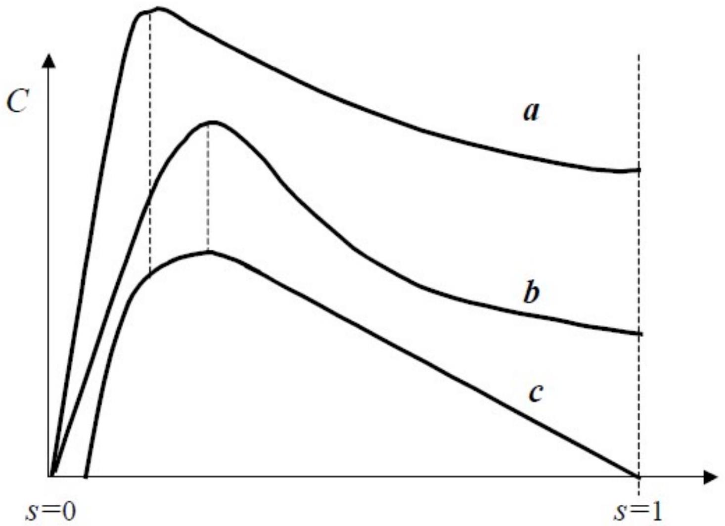 - **Curva c**: funzionamento a regime senza avvolgimento ausiliario (coppia nulla a velocità zero)