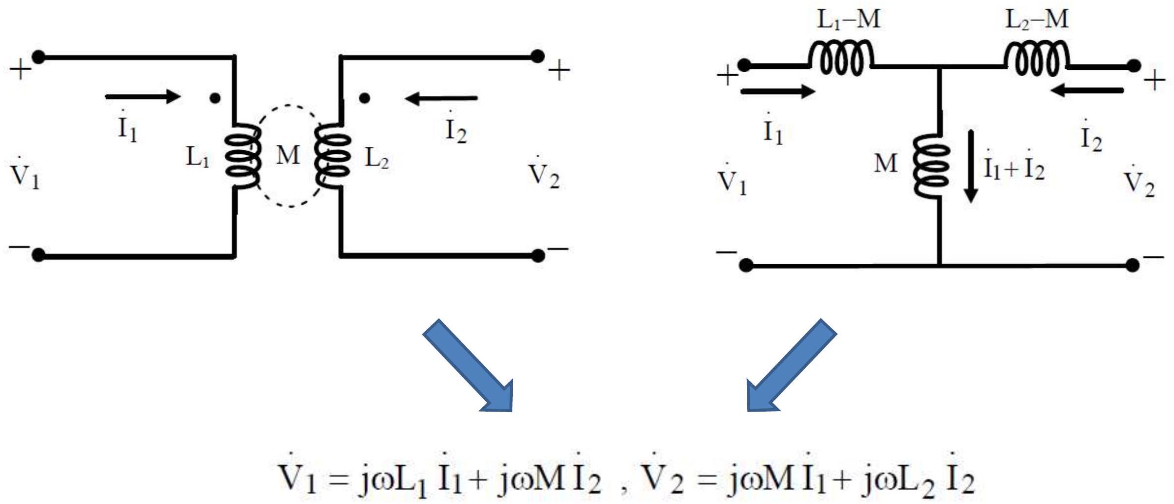 \dot{V}_{1} = j \omega L_{1} \dot{I}_{1} + j \omega M \dot{I}_{2} \\