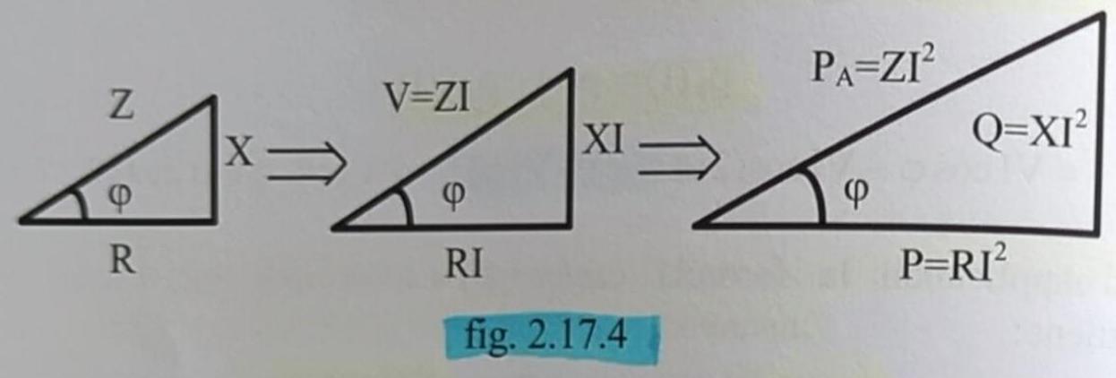 *dove si nota che esso può essere ottenuto direttamente dal **[[Impedenza e ammettenza|triangolo dell'impedenza]] e dal triangolo delle cadute di tensione**) semplicemente moltiplicando due volte per il valore efficace della corrente I i lati del triangolo dell'impedenza, oppure moltiplicando una volta per I i lati del triangolo delle cadute di tensione.