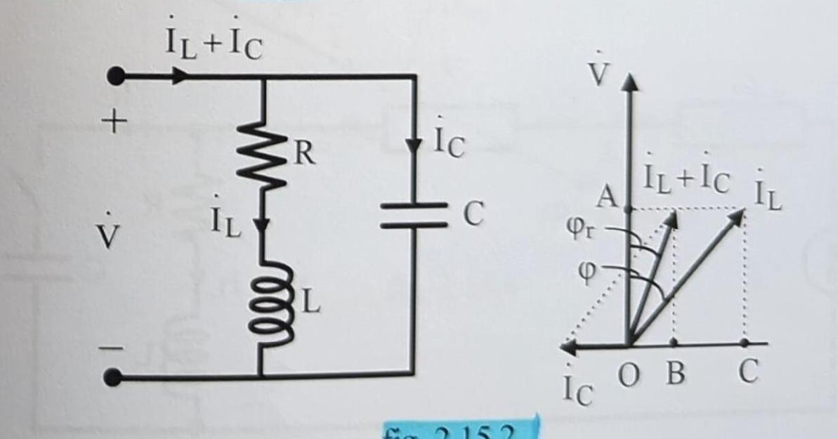 da cui si ottiene la relazione che esprime il valore della **capacità da applicare in parallelo** al bipolo ohmico induttivo per avere un rifasamento ridotto all'angolo $\varphi_{r}$ :