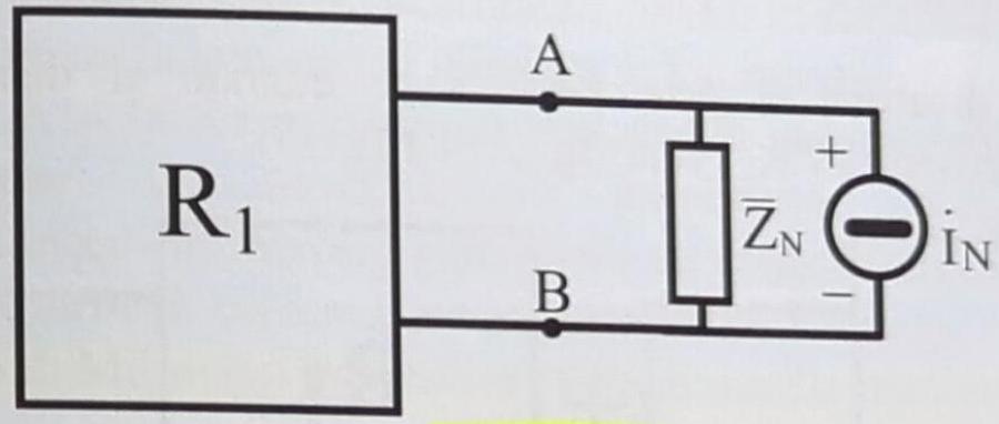 - mentre $\overline{\mathrm{Z}}_{\mathrm{N}}=\overline{\mathrm{Z}}_{\mathrm{AB} 0}$ è pari all'impedenza che si ha ai terminali della rete $R_{2}$ disattivata, già definita per il **teorema di Thevenin.**